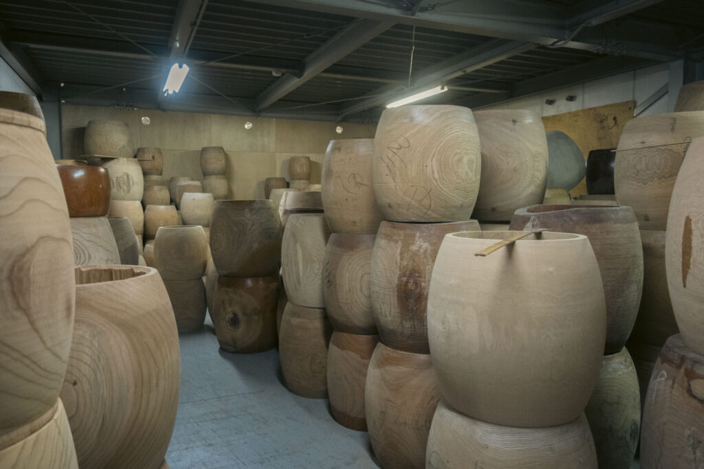 「そうですねぇ、これは辛い質問です(笑)。正直なかなか夢が持てるような状況ではなくて、刃物一つにしても作り手がどんどんやめていきますし。機械類はもっと深刻で、日本でも木工とかの機械類作るところもみんな辞めてるし、その事業存続に対してやっぱりハードルが高くなってきています。売れ行きももちろんだけど、そういう道具類の確保も大変なんですよね。夢というか目標に近いんですが、うちが小さくなってもなんらかの形で誰かに引き継いで残してもらうのは、目標であり夢というか。現実的にどうしていけば、というのも日々考えてんのは正直なところで、世界で展示会があってそこでうちのを使ってもらう目標がある、とかそういう景気のいいことは正直ないんです。ほんまの”夢”みたいなことを言うと、サラの太鼓10本とかつくってオリンピックでうちの太鼓叩いてる、とか見れたらいいなぁとは思いますけどね。でもそれはほんまに”夢”というか”妄想”やね。とにかくなんとか今のうちの事業が続くことが目標かな。若い人を前にしてあんまり夢のない話したくないねんけどね(笑)」