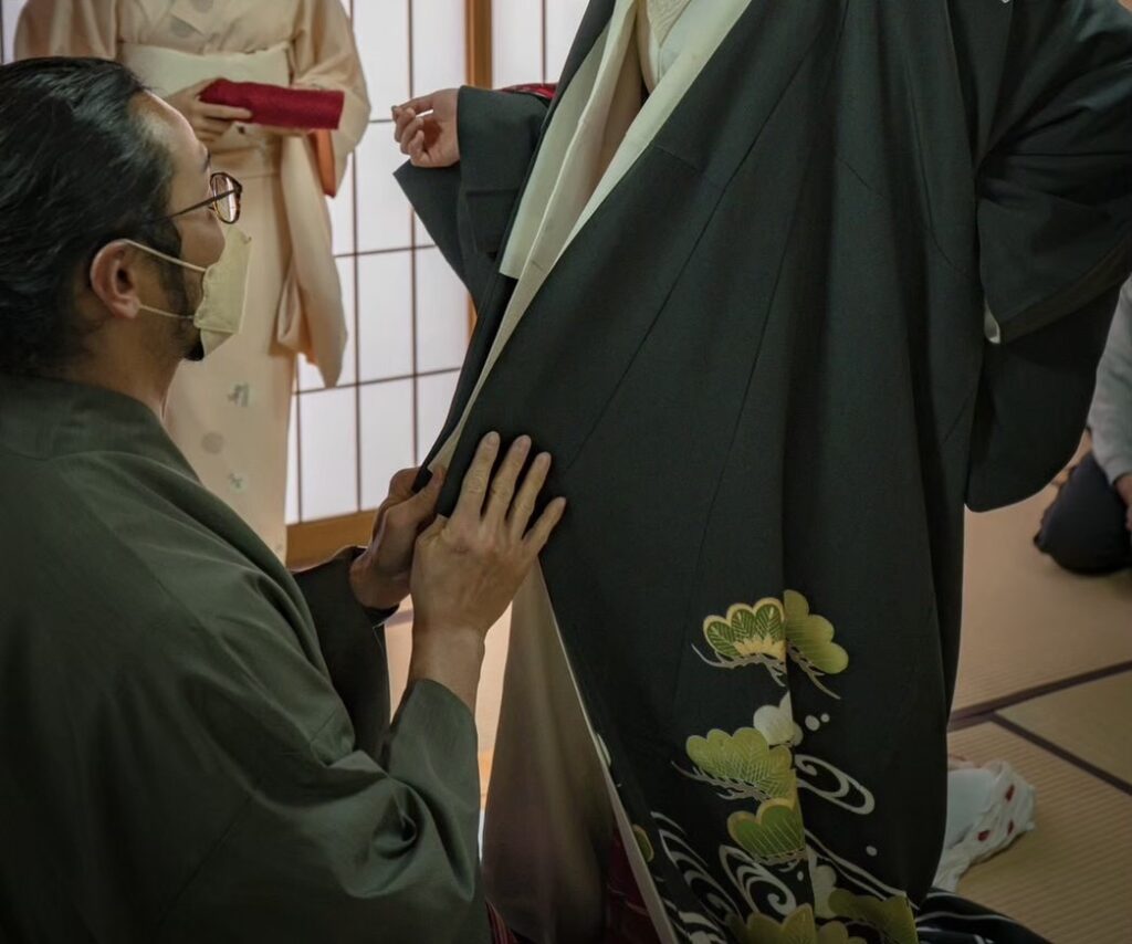 「舞妓さんのデビューの日はその子のご家族も、お化粧や着付けの段階から見にこられるんです。そんなことってその後滅多にあるわけではないので、時間があるときは着付けの前に着物や帯に触れてもらったり、重さを知ってもらったりっていうのを密かにやっています。それは、その子がどんなもんをこれから身につけるかっていうのを知ってもらうことで、家族のなかで何か思いや体験がより深まったら、という気持ちがあって。せっかく来てるんやしね」