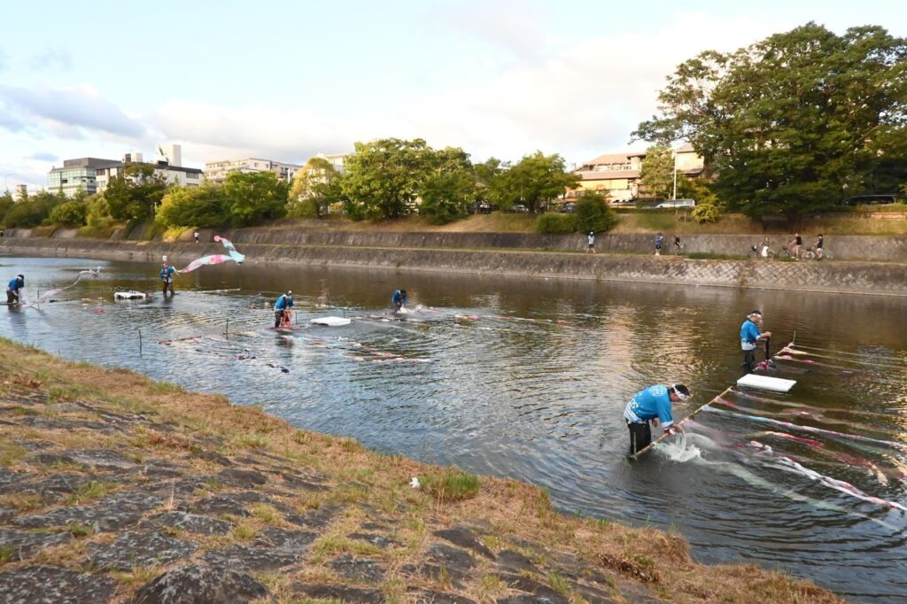 毎年8月の第一土曜日・日曜日に開催される「鴨川納涼」祭でメインイベントとして行われる、友禅流しのデモンストレーション「鴨川友禅流しファンタジー」について、「株式会社広海」の西村さんにお話をお聞きしました。