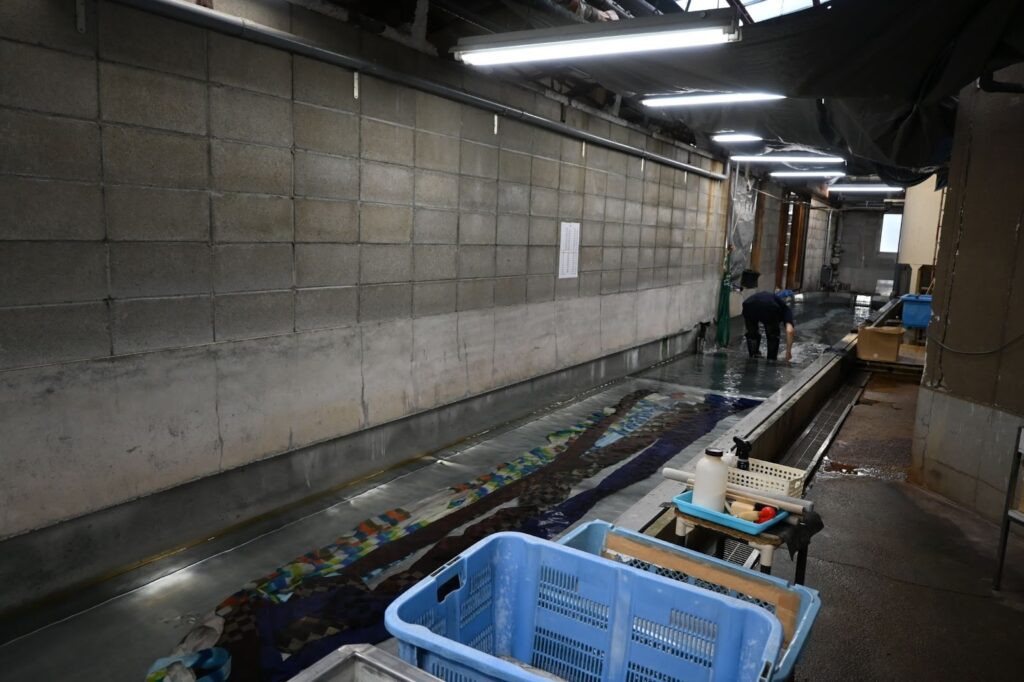 「設備として特化しているので、人工河川の方が格段に洗いやすいです。ほんまもんの自然の川で洗っておられた昔の職人さんはすごい体力と技術があったんだなと思います」